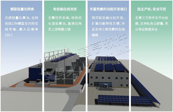 BIMEngine采用自主核心技术研发,通过轻量化算法自动对BIM模型进行格式转换和轻量化处理,以BIM模型为载体高效快速接入设计成果,支持模型文件的无缝对接。应用高频关键技术组件,为工程建设行业打造通用轻量化BIM应用。平台实现私有三维引擎的灵活部署,支持三维场景快速渲染,实现BIM模型在Web端、移动端在线可视化展现和交互操作,支持模型的浏览、漫游、精确测量、编辑、合并、分解等。